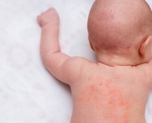 একজিমা ছাড়াও, অ্যালার্জেনের সংস্পর্শে আসার পর বা নির্দিষ্ট কিছু খাবার খাওয়ার পর শিশুদের অ্যালার্জিক ফুসকুড়ি (অ্যালার্জিক ডার্মাটাইটিস) হতে পারে। তীব্র চুলকানি, ত্বক লালচে হয়ে যাওয়া, ফুসকুড়ি, ফোসকা এবং আমবাত হতে পারে। সময়ের সাথে সাথে ত্বক পুরু এবং খসখসে দেখা দিতে পারে।
